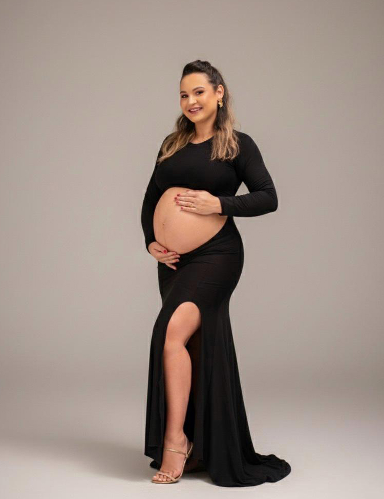 Este vestido para ensaio fotográfico de gestante em viscolycra premium foi desenvolvido para proporcionar elegância, conforto e caimento perfeito em qualquer tipo de sessão. Confeccionado em malha macia e altamente elástica, o modelo valoriza as curvas com naturalidade e se adapta ao corpo sem marcar.